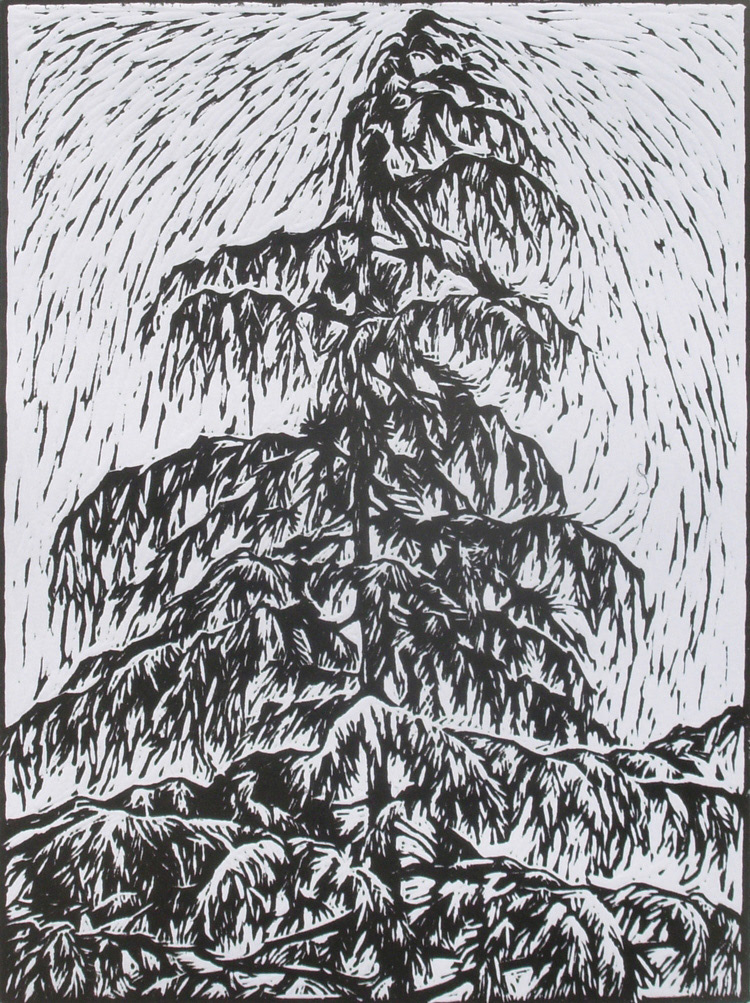 Alla cima della montagna 2011, Woodblock printing, 10 x 10 cm